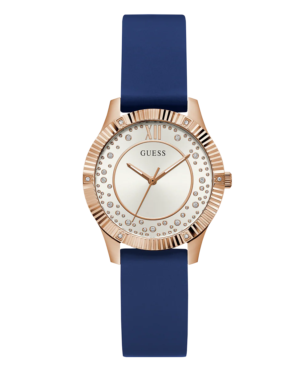 GUESS Ladies Blue Rose Gold Tone Analog Watch