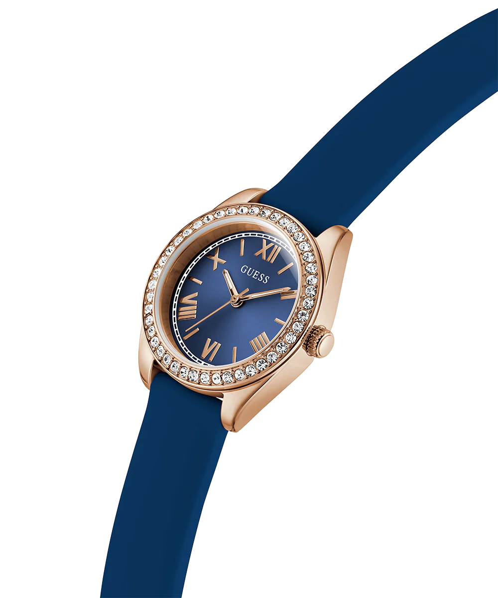 GUESS Ladies Mini Luna Blue Rose Gold Tone Analog Watch