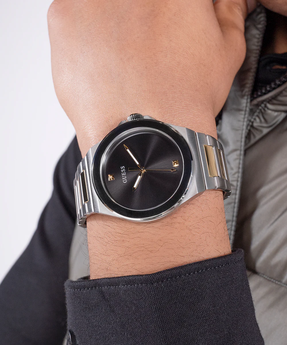 GUESS Mens 2-Tone Silver Tone Analog Watch